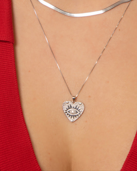 Evil Eye Heart Necklace Silver