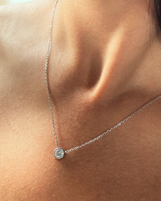 Solitaire Round CZ Necklace Silver