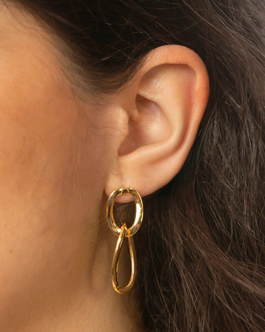 Linked Hoops Stud Earrings Gold