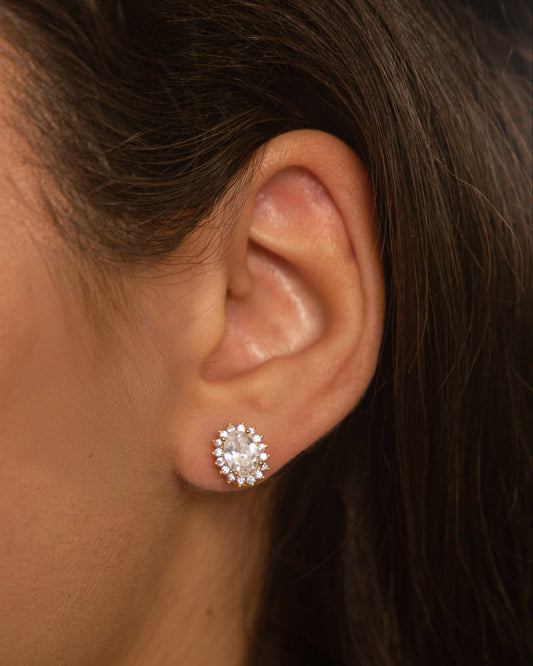 Oval Halo Crystal Stud Earrings Gold