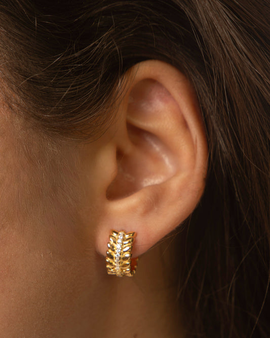 Vine Leaf Huggie Hoop Earrings Gold